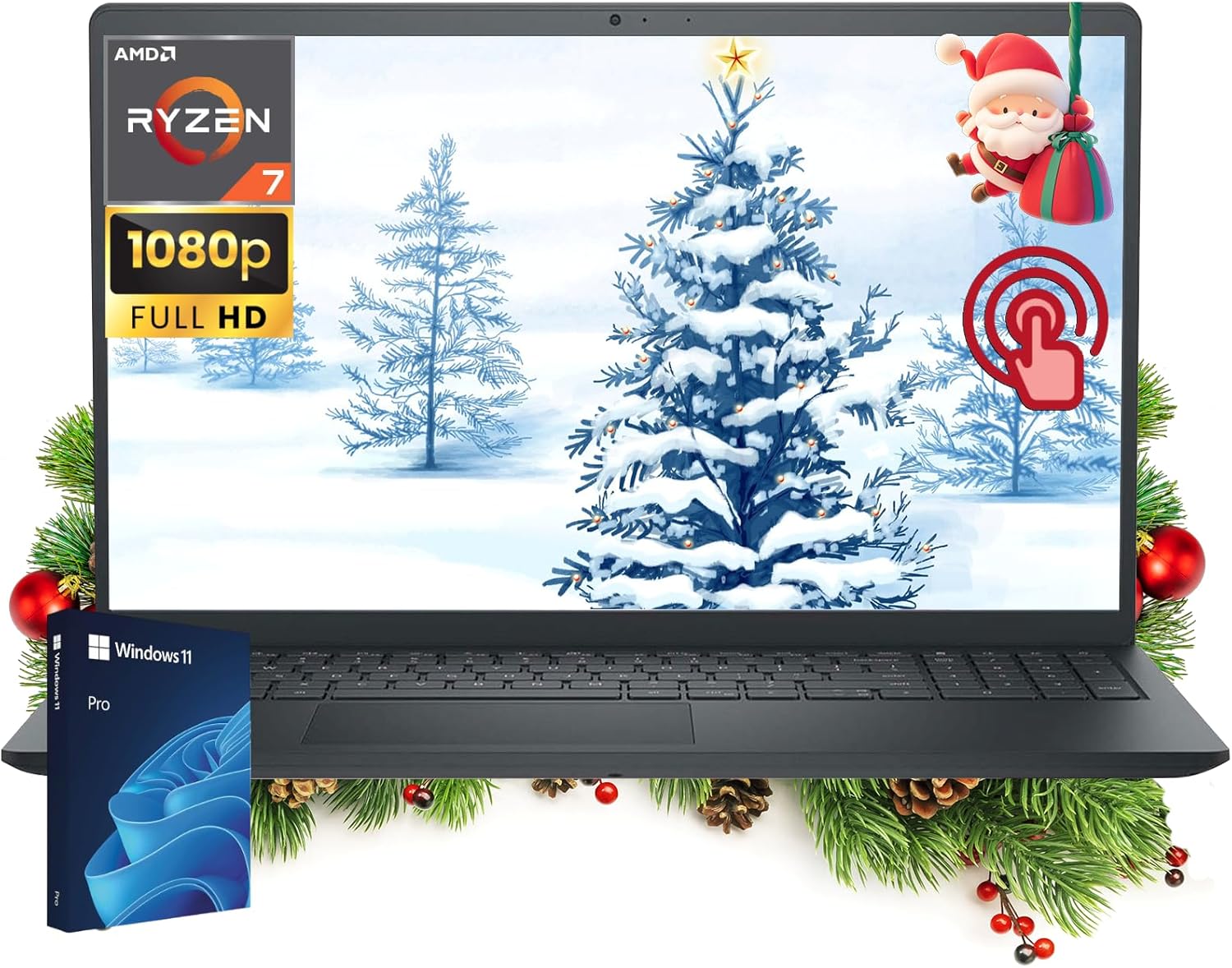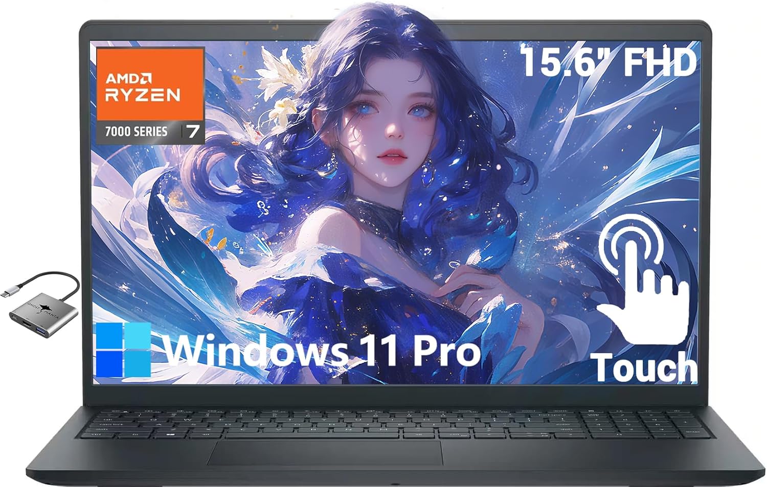 Touchscreen Laptop for Student and Business Inspiron 15.6″ FHD, 8-Core AMD Ryzen 7 (Beat i7-1255U), 16GB RAM 1TB SSD, Long Battery Life Win 11 Pro Copilot AI, WiFi Bluetooth w/GM Accessory